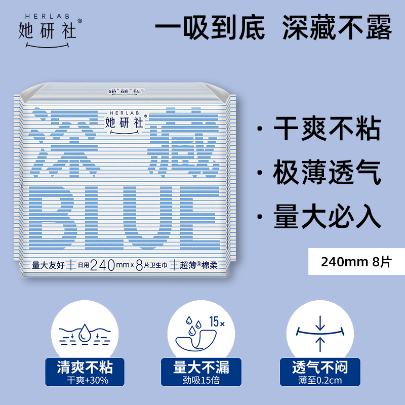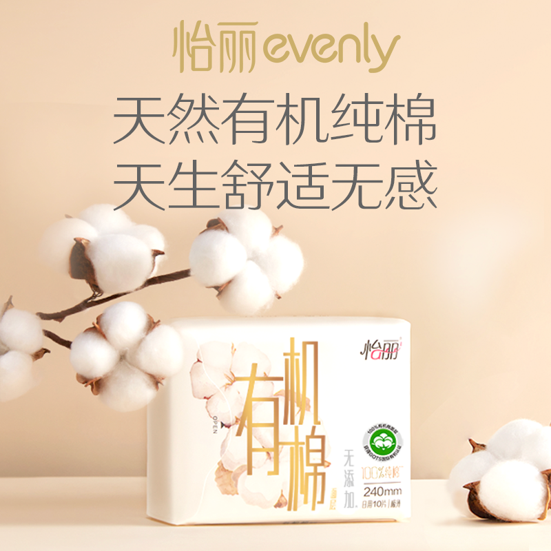 【怡丽】有机棉卫生巾日夜用超长卫生巾透气防漏姨妈巾2包