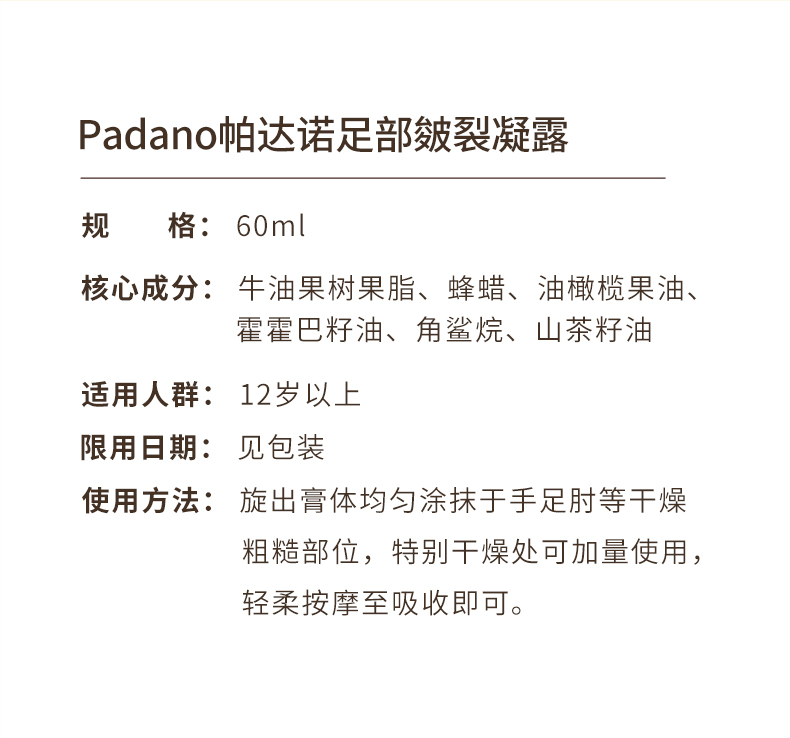【帕达诺】足部皴裂凝露60ml*2瓶