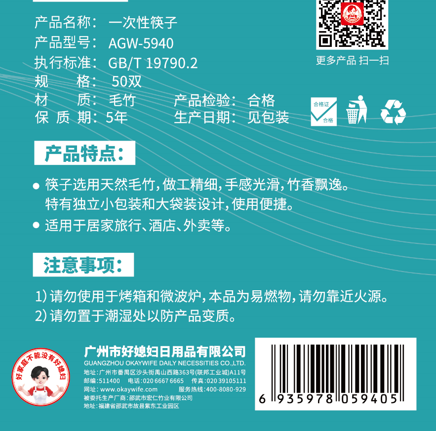 【好媳妇】5940一次性筷子50双/包