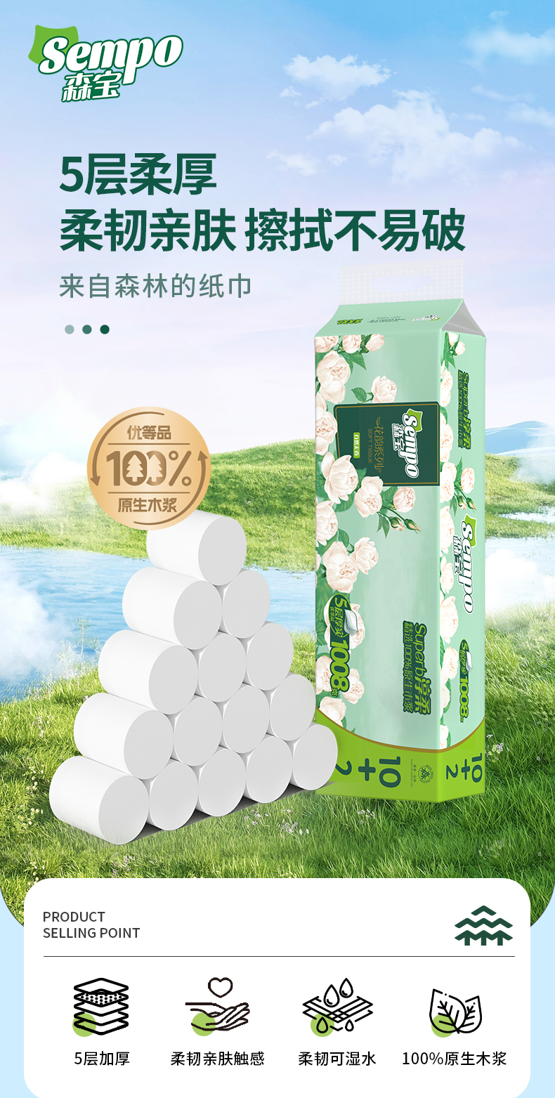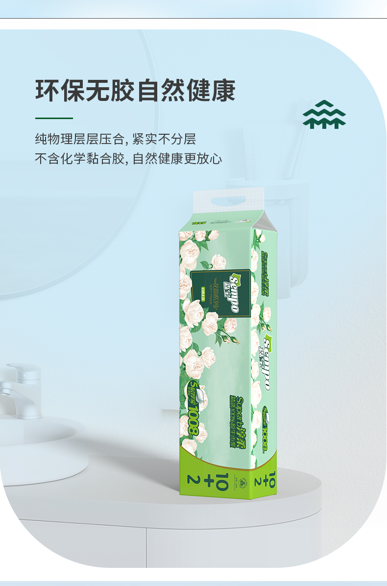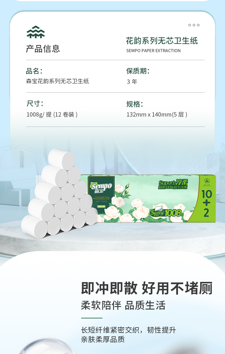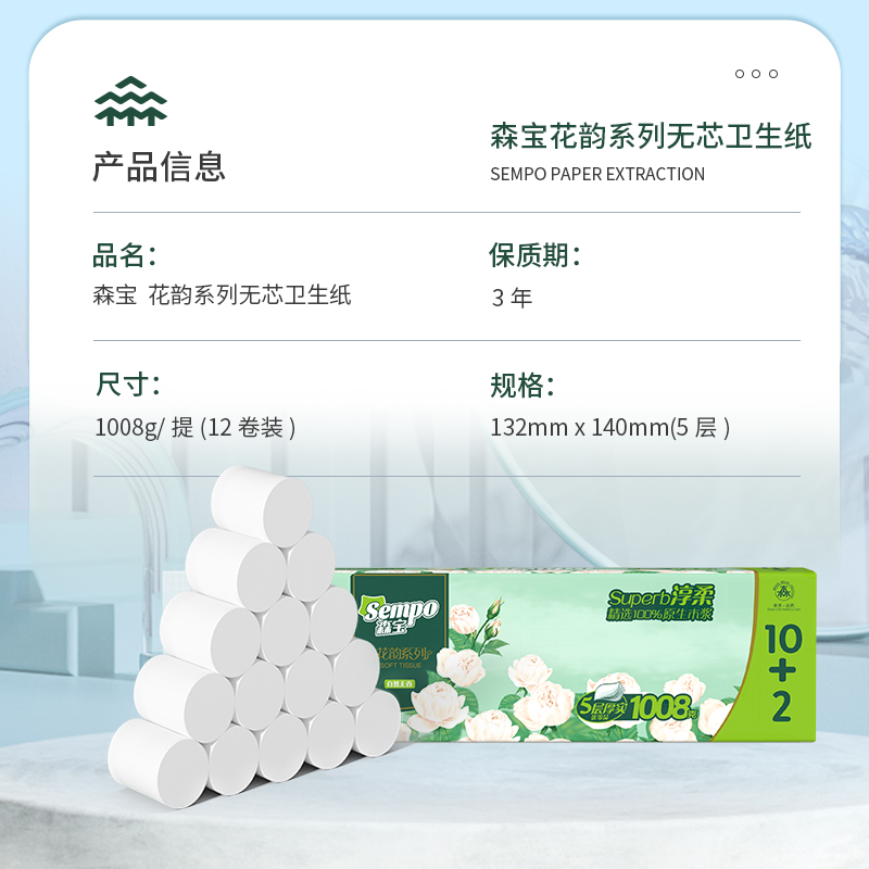【森宝】花韵无芯卷纸1008g 五层12卷/提