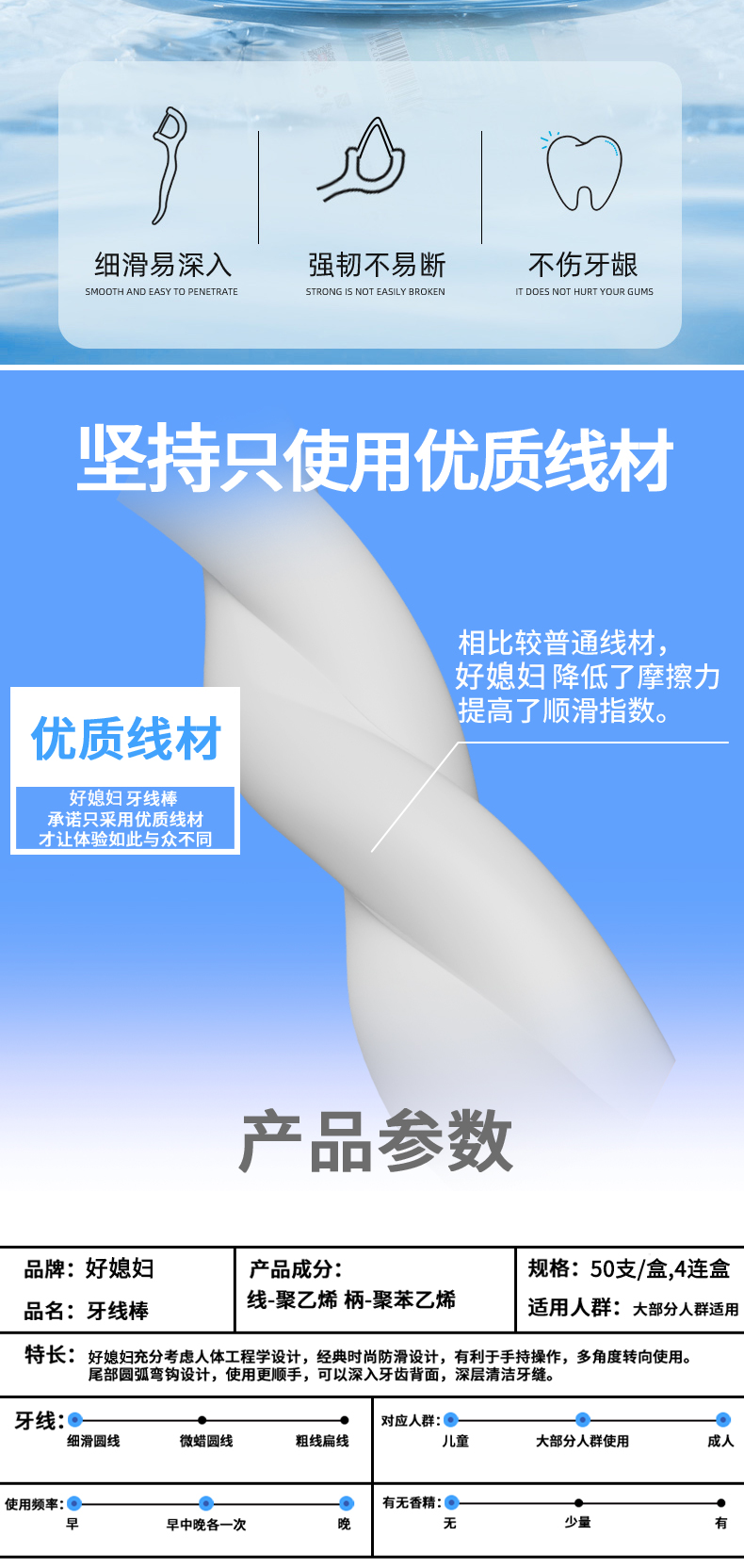 【好媳妇】5908洁齿牙线棒50支/盒(4盒/包)