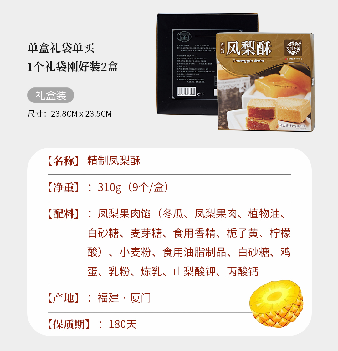 【黄则和】中华老字号台式凤梨酥310g礼盒