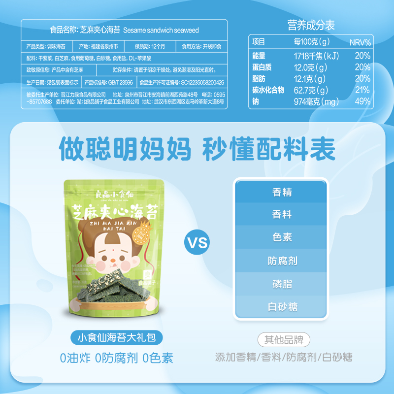 【良品铺子】小食仙儿童零食大礼包即食紫菜芝麻海苔夹心脆组合158.8g 148550