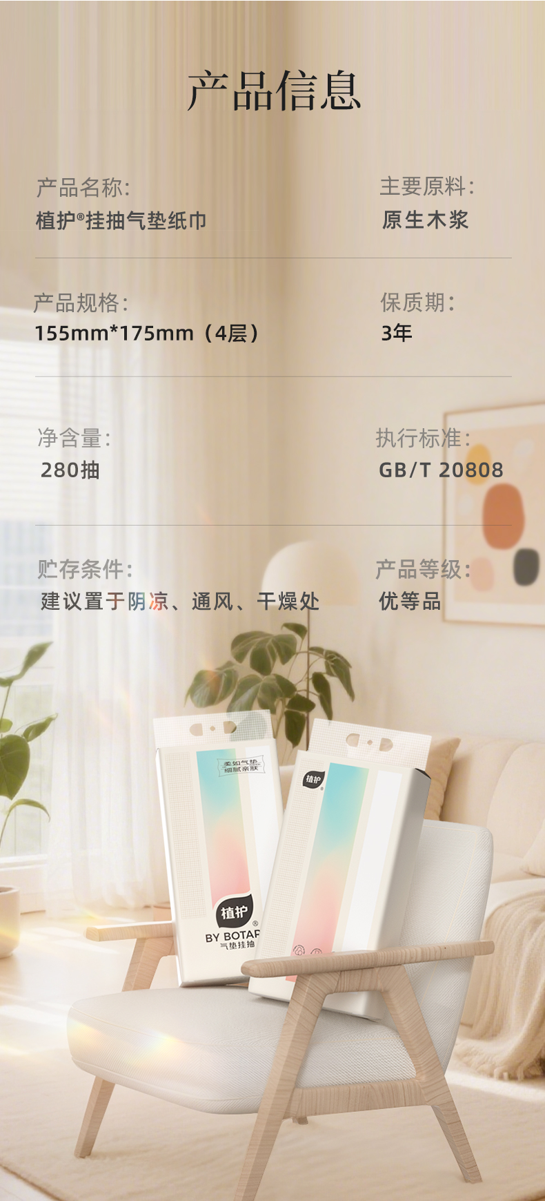 【植护】挂抽纸巾(幻彩系列)155*175/4层 280抽*1提