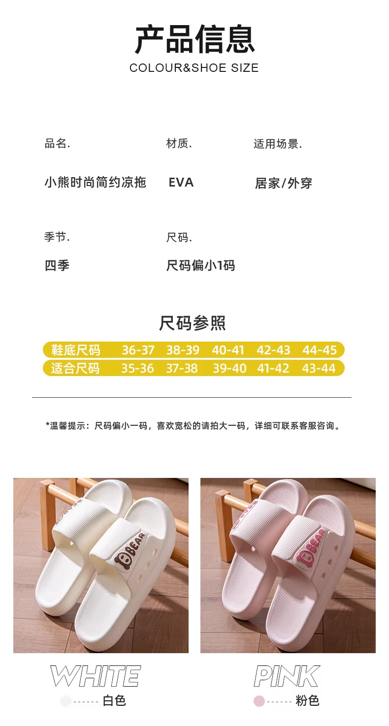 【辉越佰仪佰顺】轻感简约小熊凉拖鞋(颜色随机发货)
