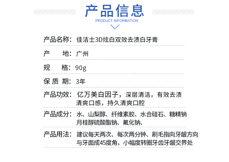【佳洁士】3D炫白去渍牙膏90g/盒
