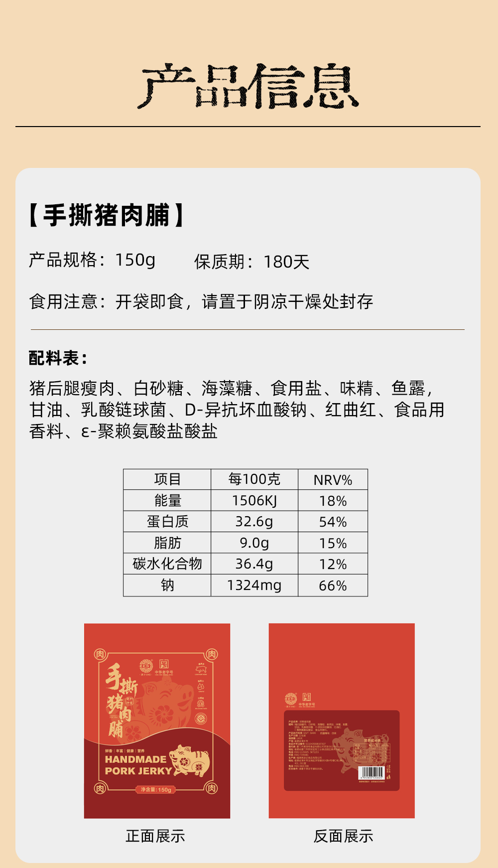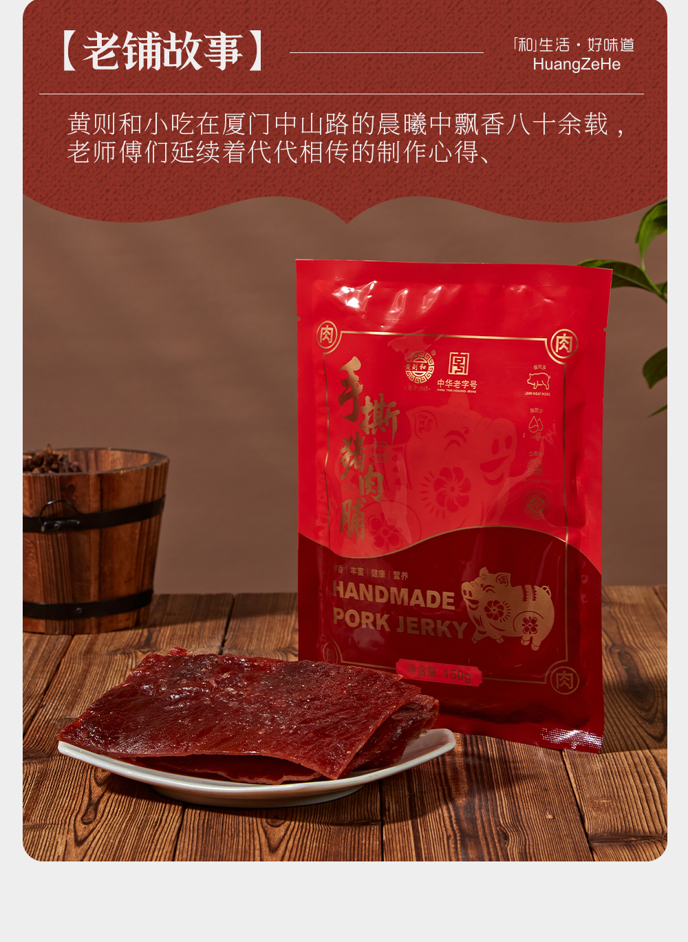 【黄则和】中华老字号厦门特产手撕袋装猪肉脯150g*2袋原味