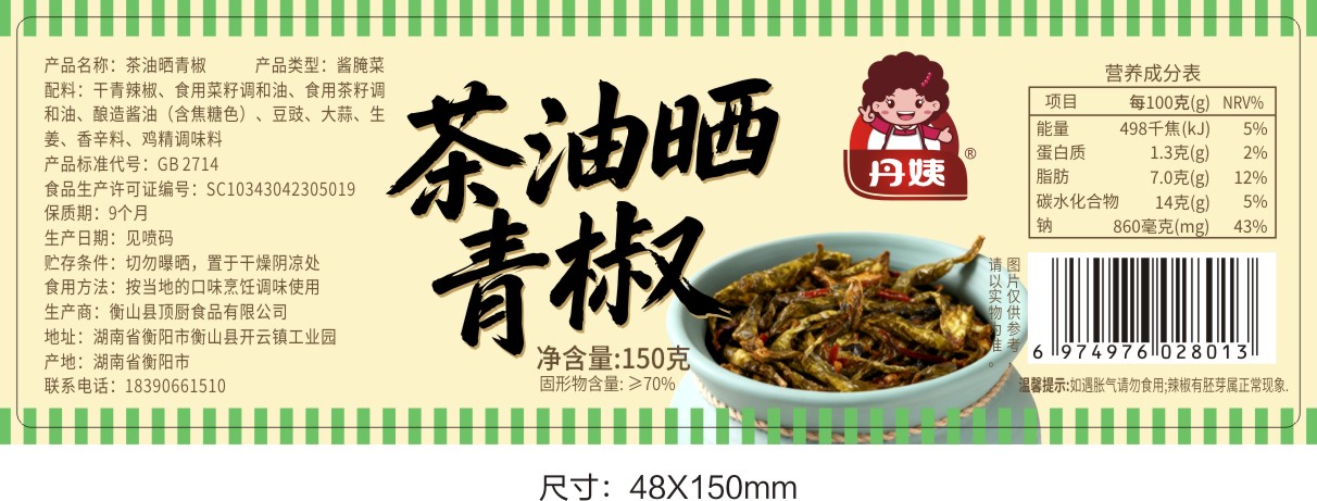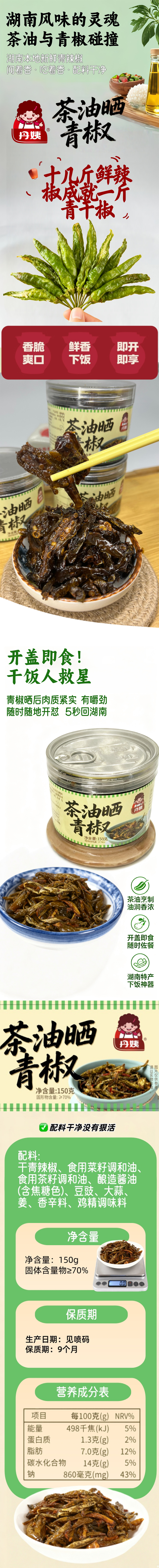 【丹姨】茶油晒青椒150g/瓶