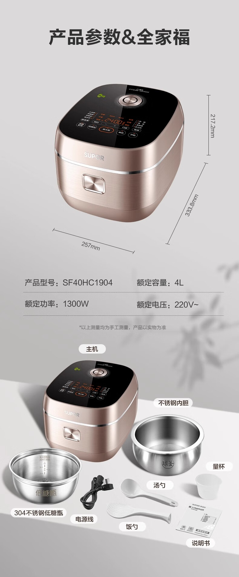 【苏泊尔(SUPOR)】低糖球釜IH电饭煲4L SF40HC1904