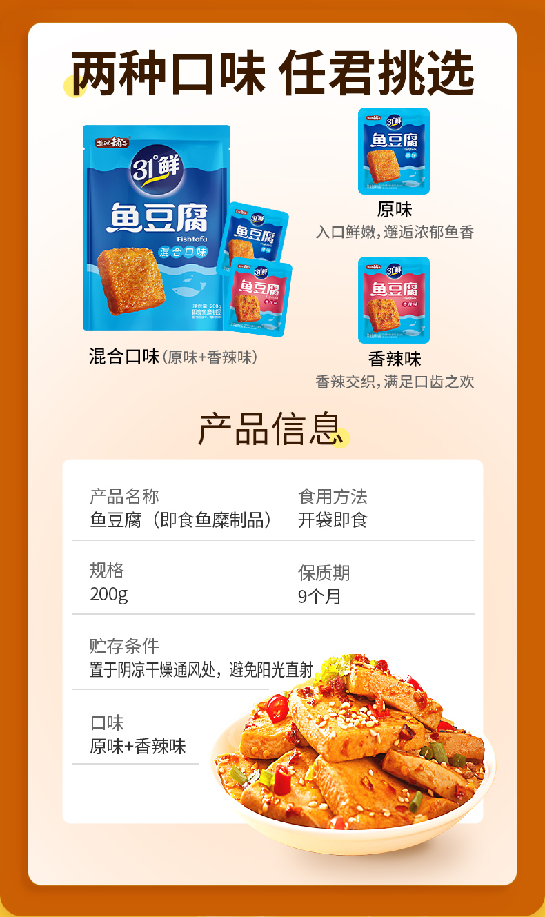 【盐津铺子】9639深海鱼豆腐200g(原味+香辣)