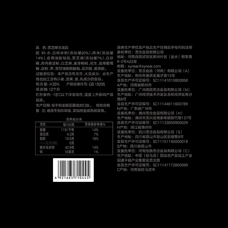 【思念】经典黑芝麻玉汤圆320g*3袋