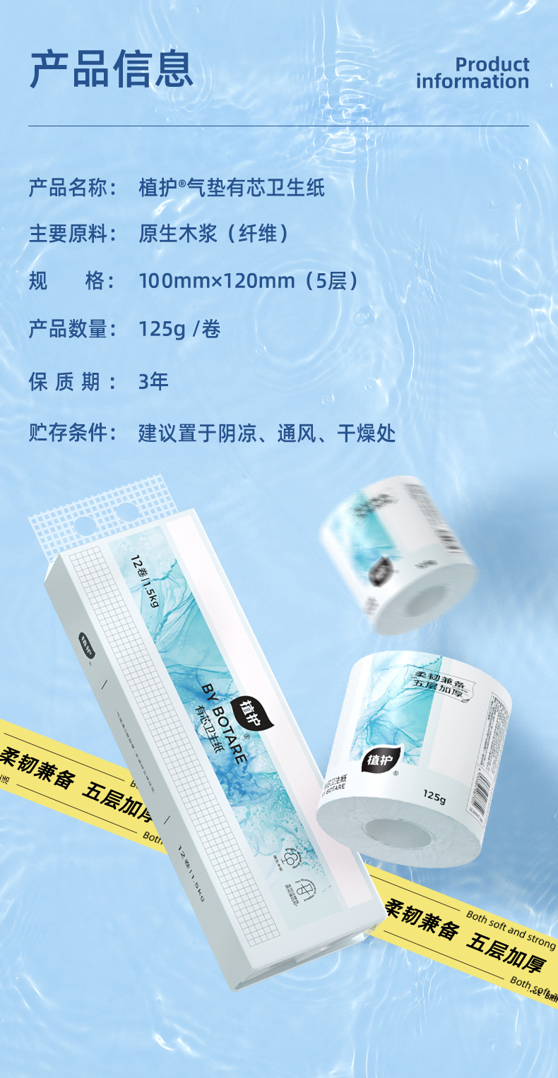 【植护】有芯卷纸100*120/5层125g*12卷*1提