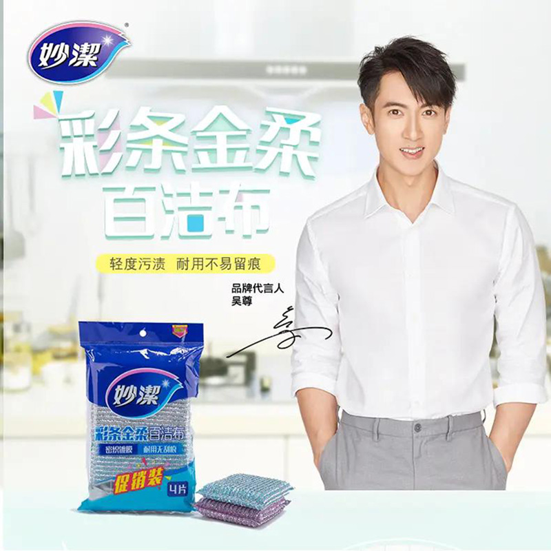 【妙洁】清洁抹布彩条金柔百洁布12.9*8.2cm*4片