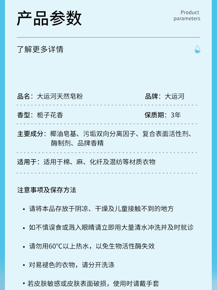 【大运河】天然皂粉栀子花香洗衣粉1kg/袋
