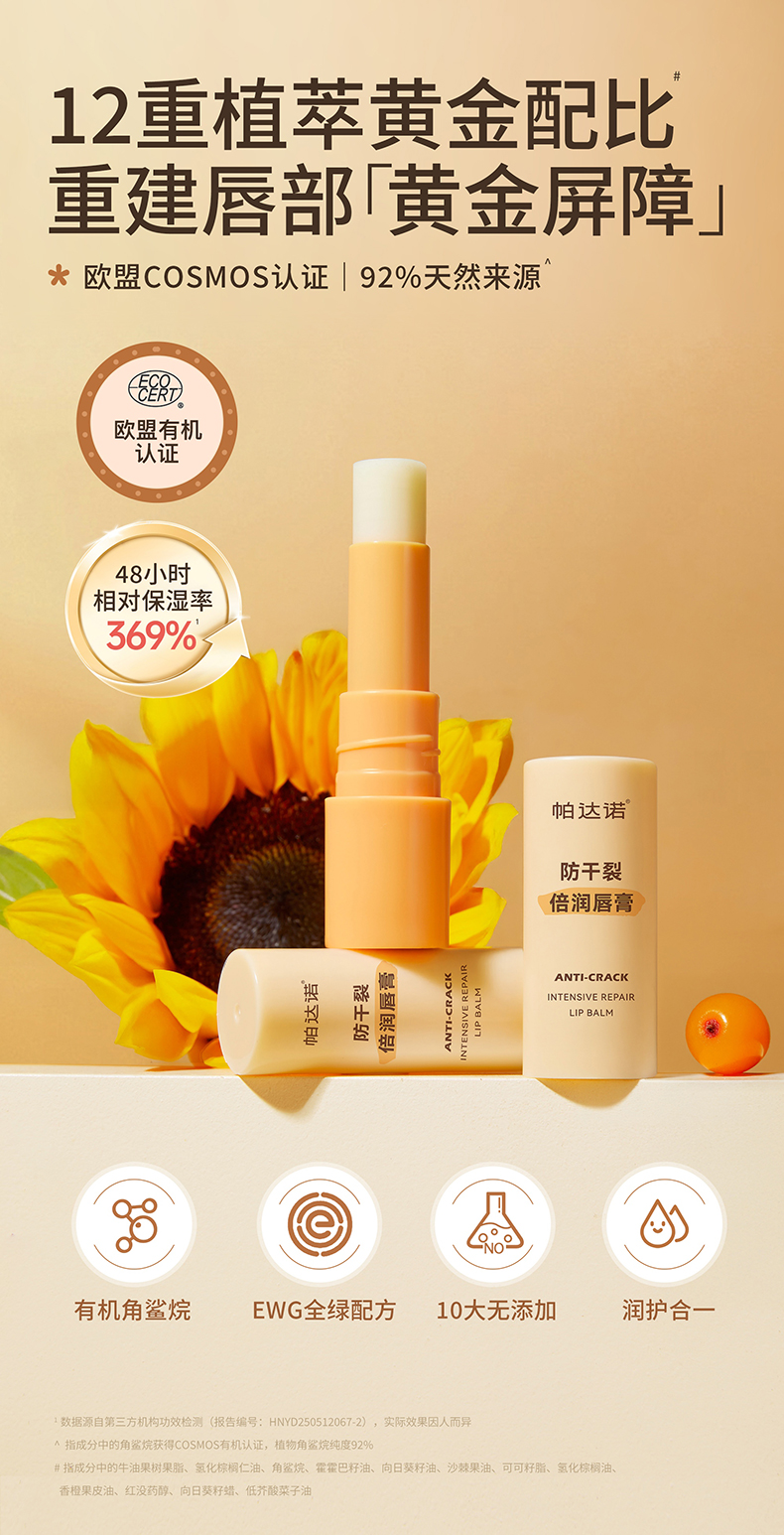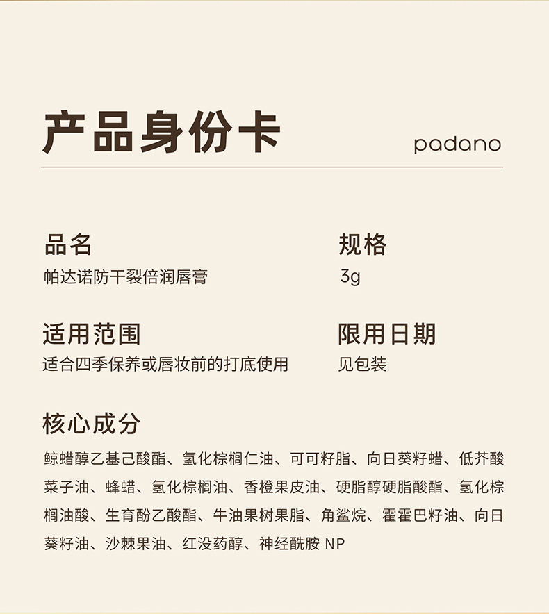 【帕达诺】防干裂倍润唇膏3g/支*2支