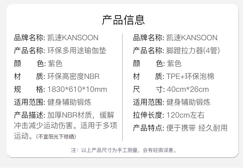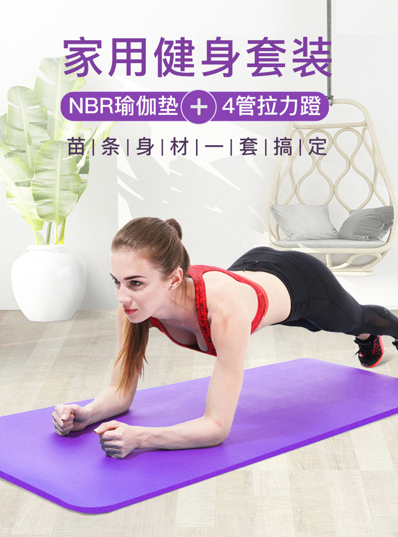 【凯速】加厚防滑环保瑜伽垫+拉力器健身套装