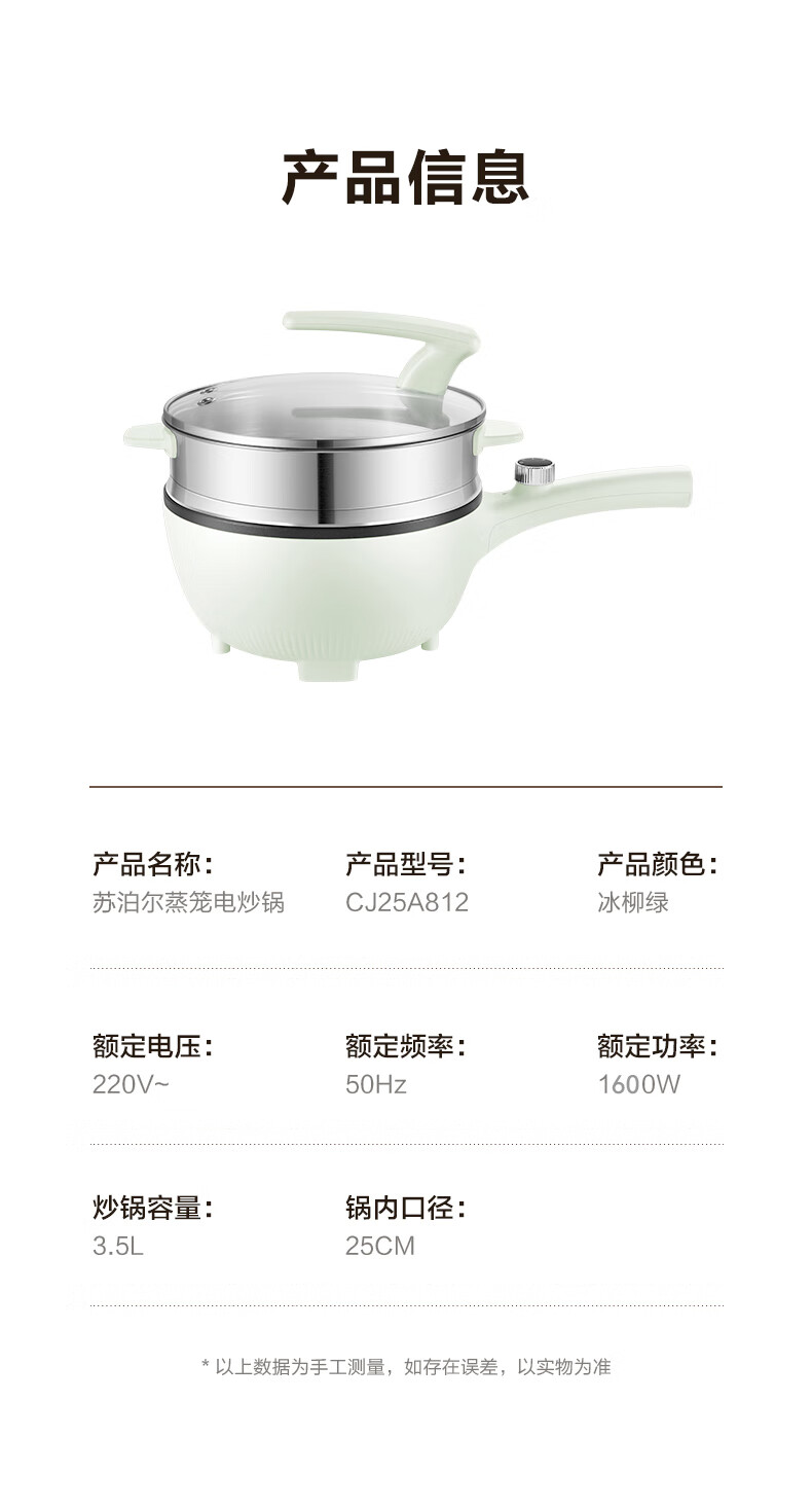 【苏泊尔(SUPOR)】电煎炒锅带蒸笼CJ25A812L