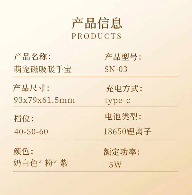 【尚格诺】萌宠磁吸暖手宝SN-03 颜色随机