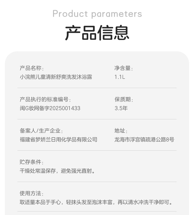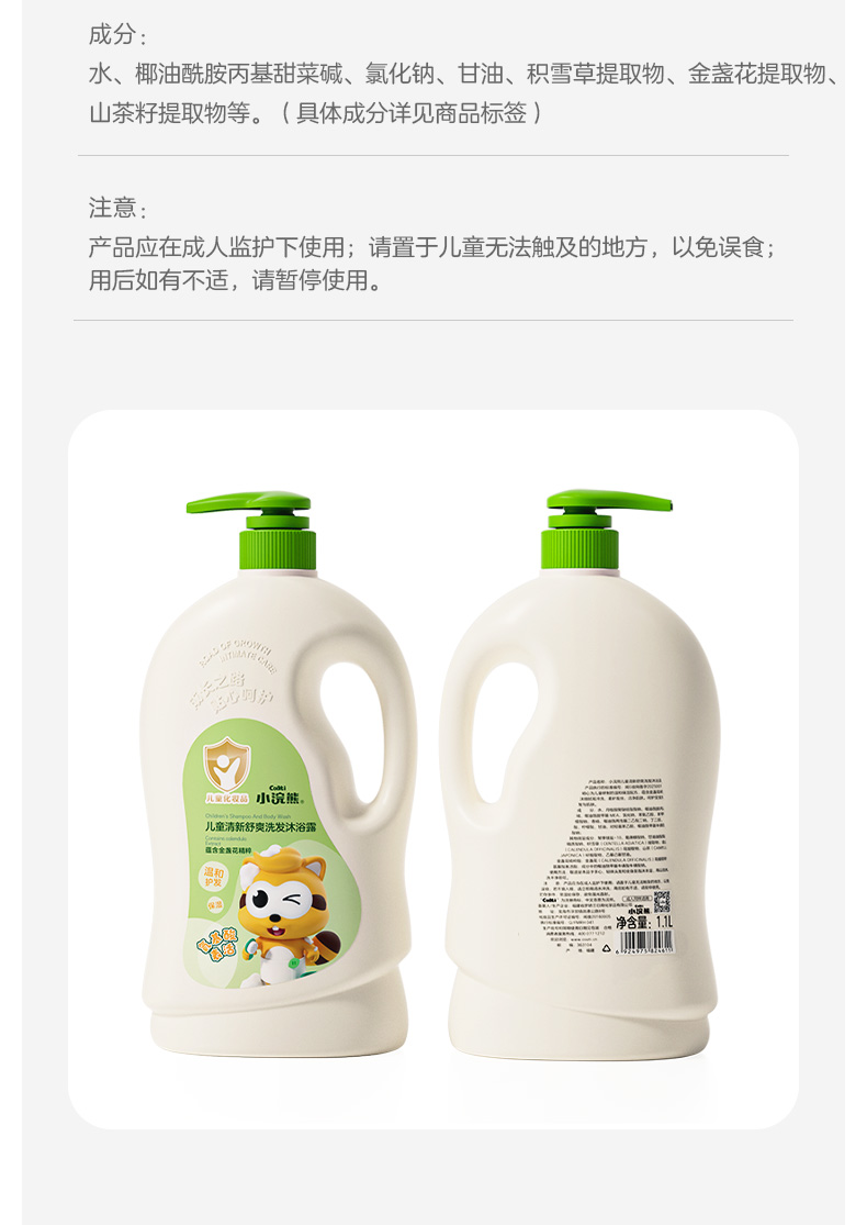 【小浣熊】儿童洗发沐浴露二合一1100ml