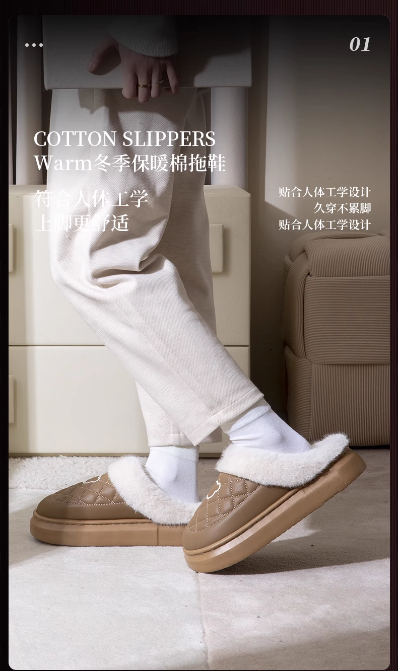 【辉越芙湘】皮面棉拖鞋(颜色随机发货)
